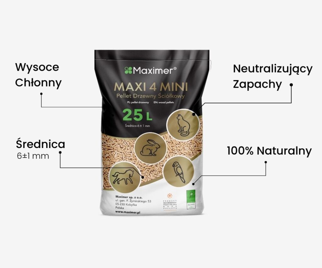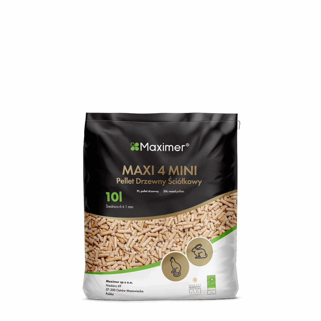 Maxi 4 Mini to ekologiczna ściółka dla: kotów, myszy, szczurów, królików, papug, świnek morskich, chomików, szynszyli, koni oraz wielu innych. Jest w 100% naturalna, produkowana z trocin iglastych, bez dodatków chemicznych.